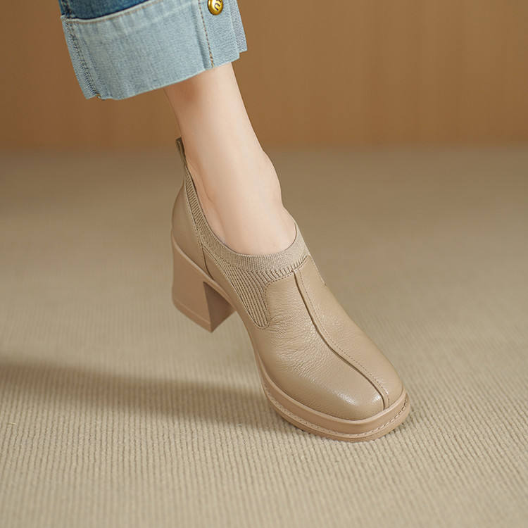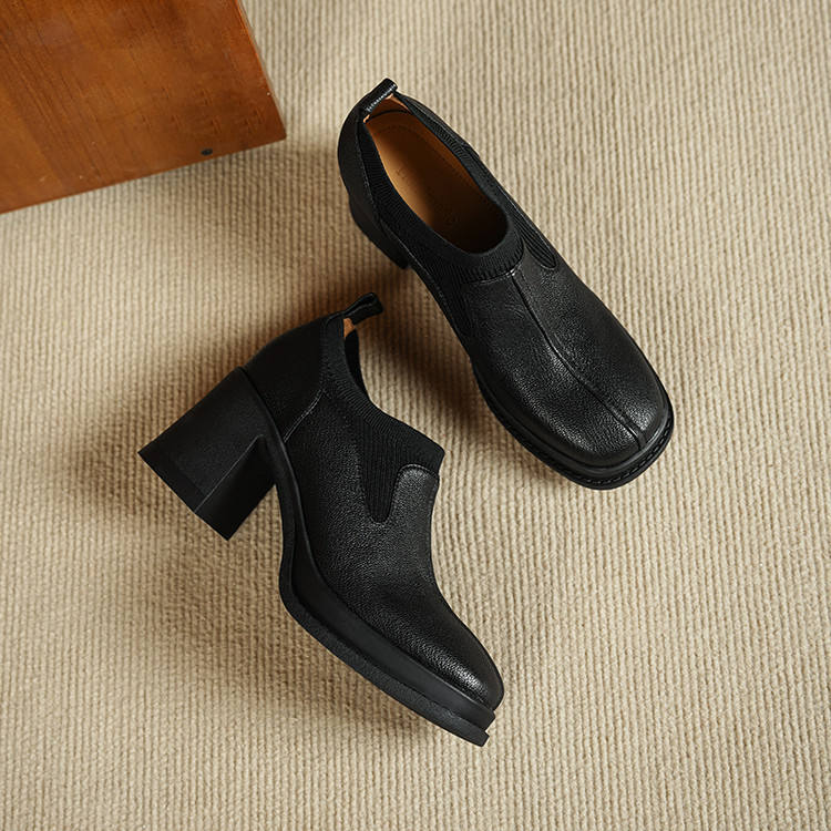 รองเท้าบูทผู้หญิงทรงเรโทร ดีไซน์หรูหรา ทำมือจากหนังแท้ กันน้ำ กันลื่น ทนทาน สีพื้น ปลายแหลม สวมใส่สบาย เหมาะกับทุกโอกาส