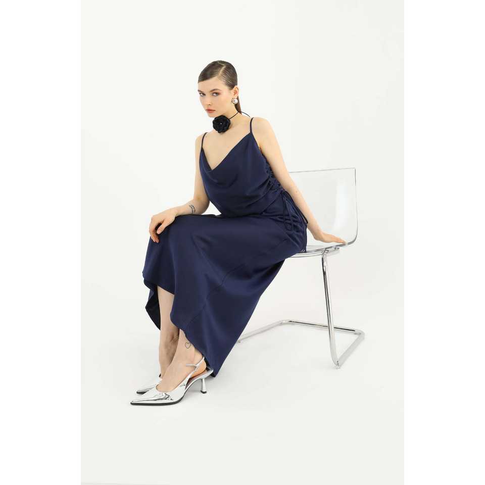 กระโปรงยาวผ้าซาตินสำหรับผู้หญิง ดีไซน์หรูหรา เอวปกติ ผลิตจากโพลีเอสเตอร์ 100% เงางาม รุ่น 24S-31614ETK