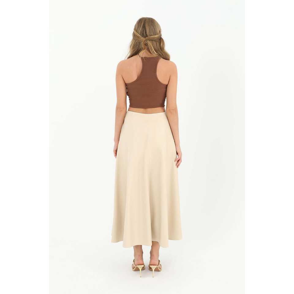 กระโปรงทรงบานผ้าซาตินสำหรับผู้หญิง ดีไซน์หรูหรา เอวธรรมชาติ เนื้อผ้านุ่ม รุ่น 18202ETK