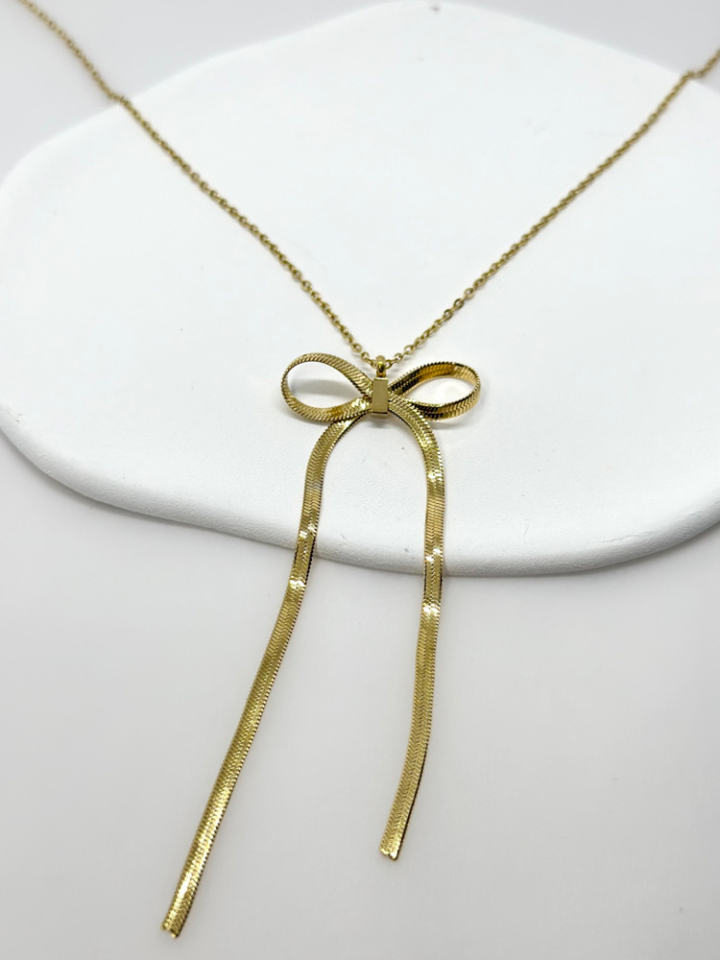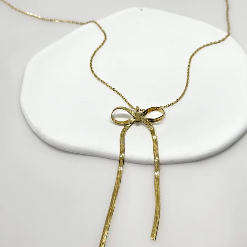 สร้อยคอโซ่ชุบโรเดียมและโรเดียมสำหรับผู้หญิงสร้อยคอแฟชั่นรูปโบว์น่ารักสำหรับผู้หญิงที่สง่างาม