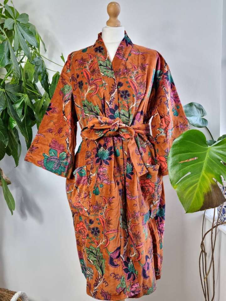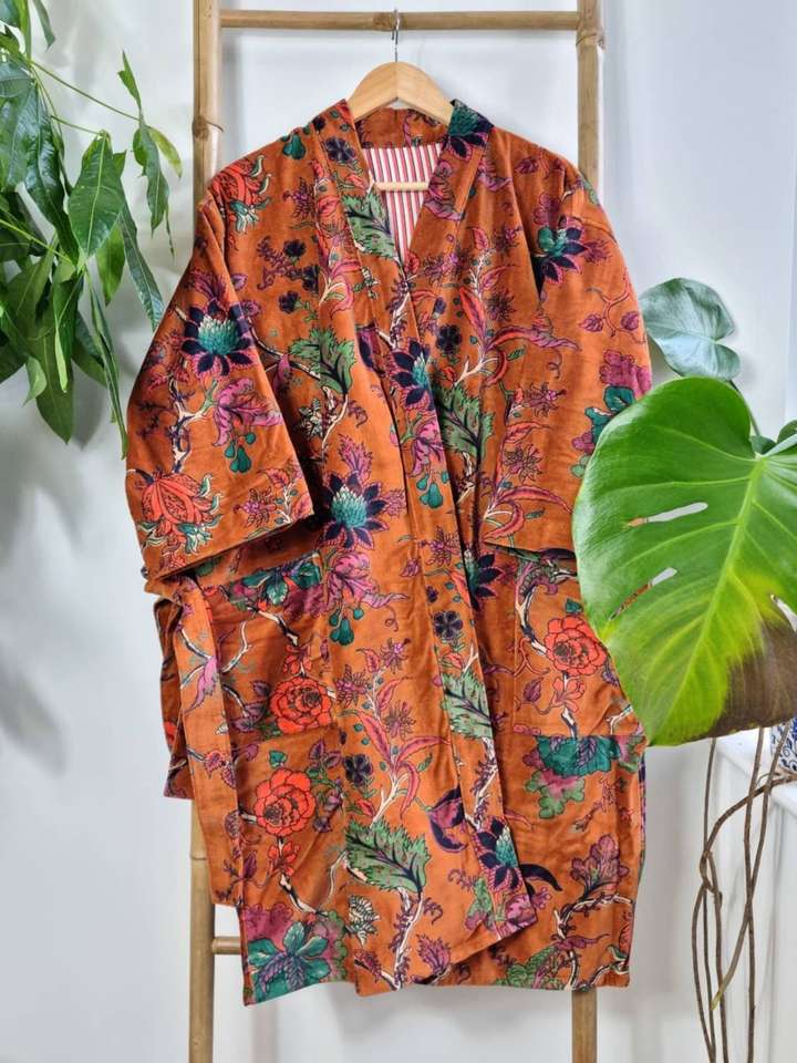 ชุดกิโมโนผ้าฝ้ายสำหรับผู้หญิงหรูหราลายดอกไม้ผ้าคอตตอนผ้าฟลีซนุ่มพิมพ์ลายปะการังผ้ากำมะหยี่ลายดอกไม้ชุดแมกซี่มีกระดุมประดับลูกไม้