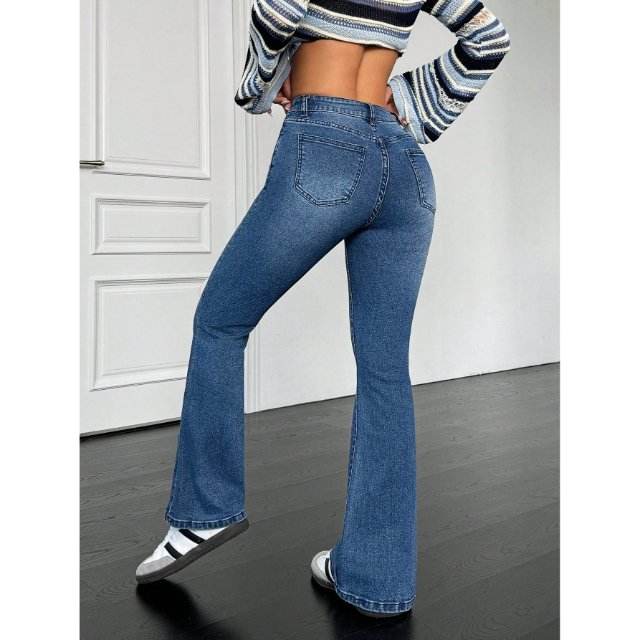 กางเกงยีนส์ทรงบลูเบลล์บอททอมเอวสูงสำหรับผู้หญิง ดีไซน์หรูหรา ผ้าเดนิมยืดสีน้ำเงินสโตน ผลิตจากผ้าที่เป็นมิตรต่อสิ่งแวดล้อม สไตล์ลำลองแนวสตรีท มีหลายขนาด