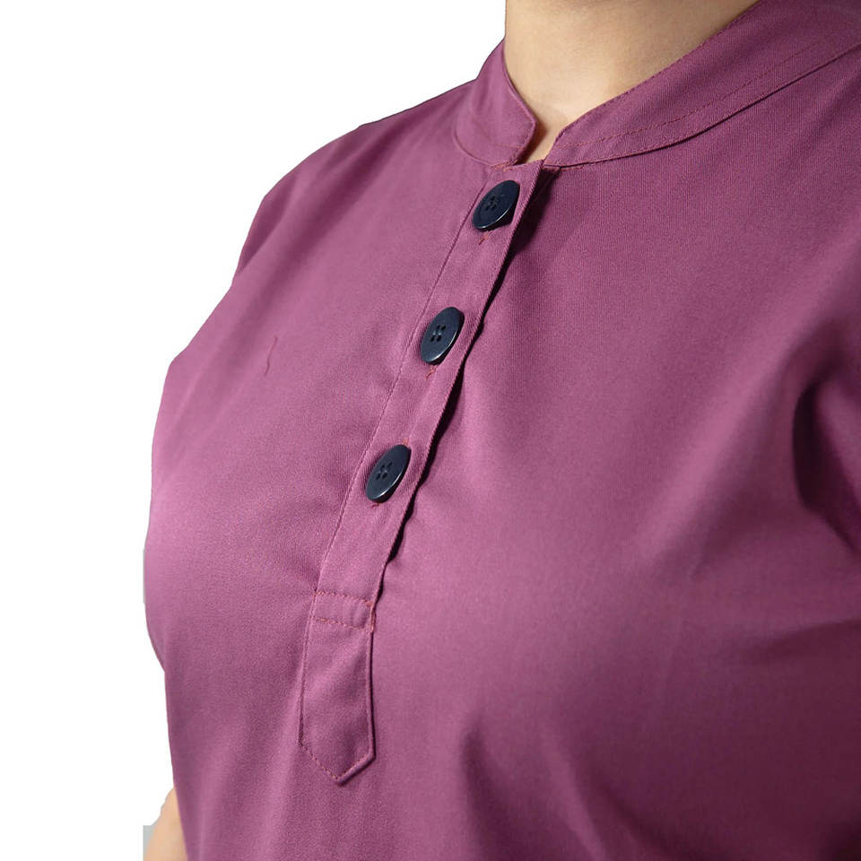 ชุดเครื่องแบบพยาบาลคอจีนของผู้หญิงที่สง่างามมีขอบตัดสีตัดกันและกระเป๋า prefect สำหรับคลินิกแล็บและโรงพยาบาล