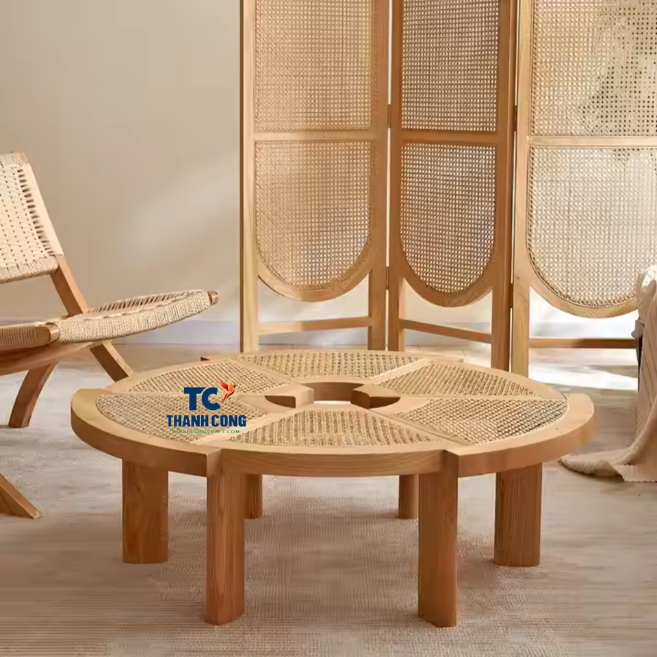 โต๊ะกาแฟหวายทำจากไม้หรูหราสำหรับตกแต่งห้องนั่งเล่นโต๊ะข้างดีไซน์ตามหลักสรีรศาสตร์โต๊ะยืดหยุ่นผลิตจากเวียดนาม