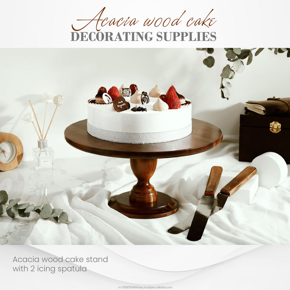 แท่นวางเค้กไม้หรูหราพร้อมไม้พาย2อันอุปกรณ์อบเค้กสำหรับงานแต่งงานงานอีเว้นท์
