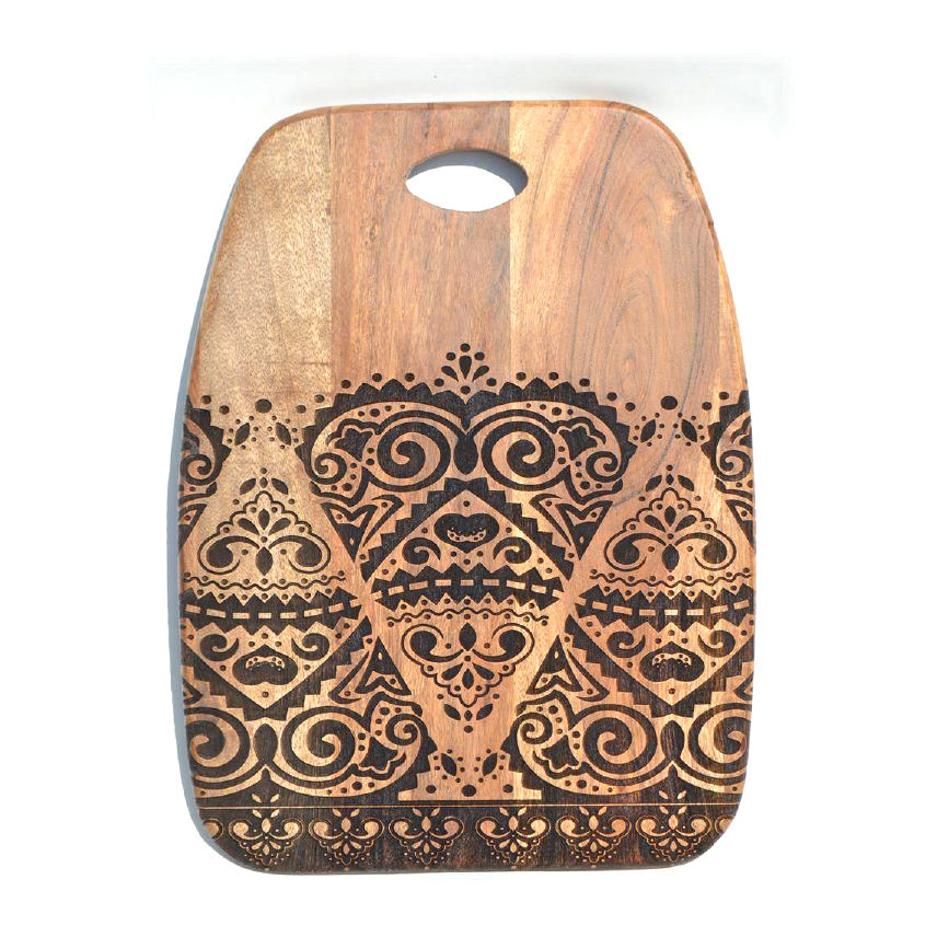เขียงไม้หรูหราพร้อมขอบแกะสลักเหมาะสำหรับเสิร์ฟขนมปังชีสและของขบเคี้ยวรสเลิศ