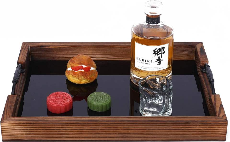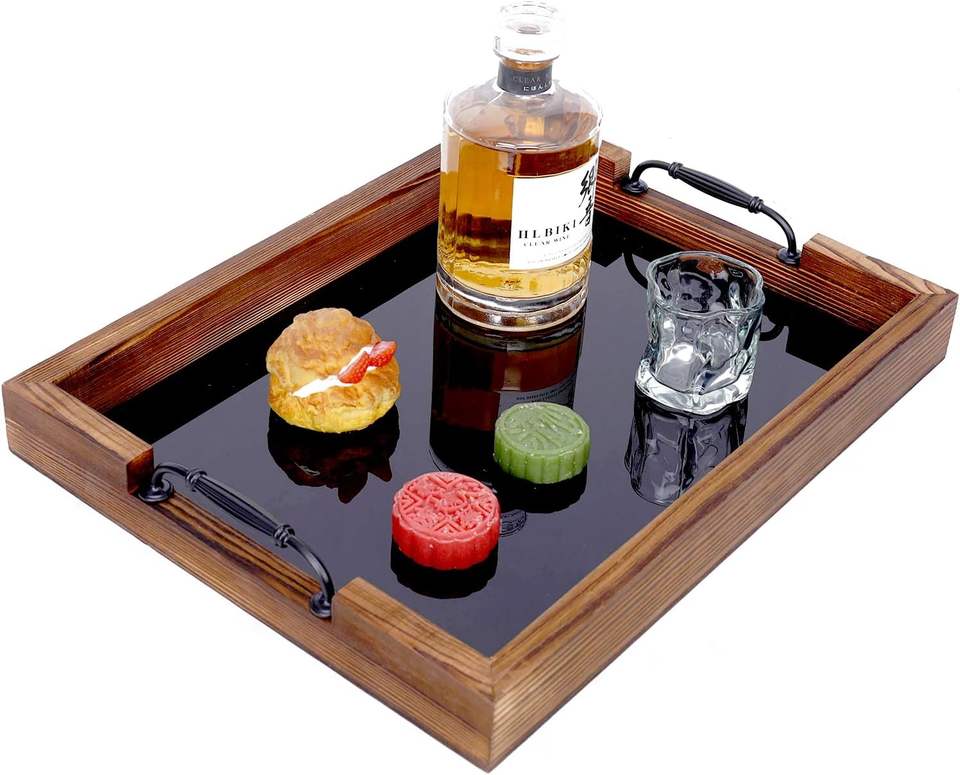 ถาดเสิร์ฟแก้วไม้หรูหราสำหรับชากาแฟขนมเพิ่มสัมผัสบ้านไร่แบบชนบทในห้องครัวและรับประทานอาหาร
