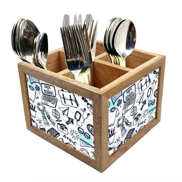 Elegant Wooden Printed Spoon Holder Stand Type Dinnerware Kitchen Organizer