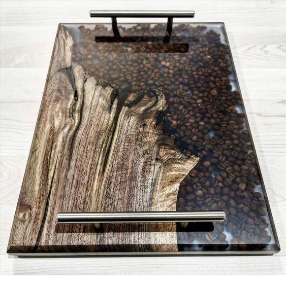 ถาดเสิร์ฟไม้เรซิ่นสุดหรู ประดับด้วยลายอเกต รุ่นพิเศษรอมฎอน