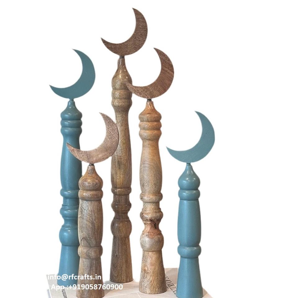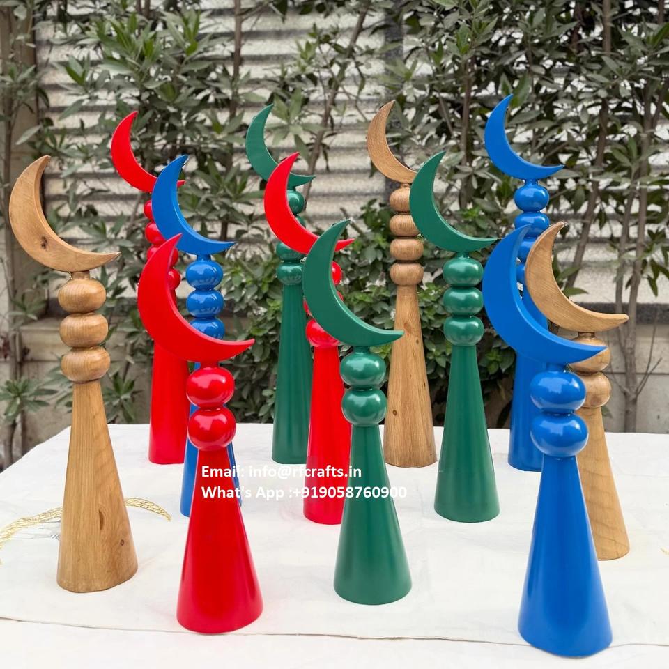 แท่นตั้งพระจันทร์เสี้ยว LED ทำจากไม้อะคริลิคหรูหราการตกแต่งโต๊ะสำหรับเดือนรอมฎอนและวันอีสเตอร์