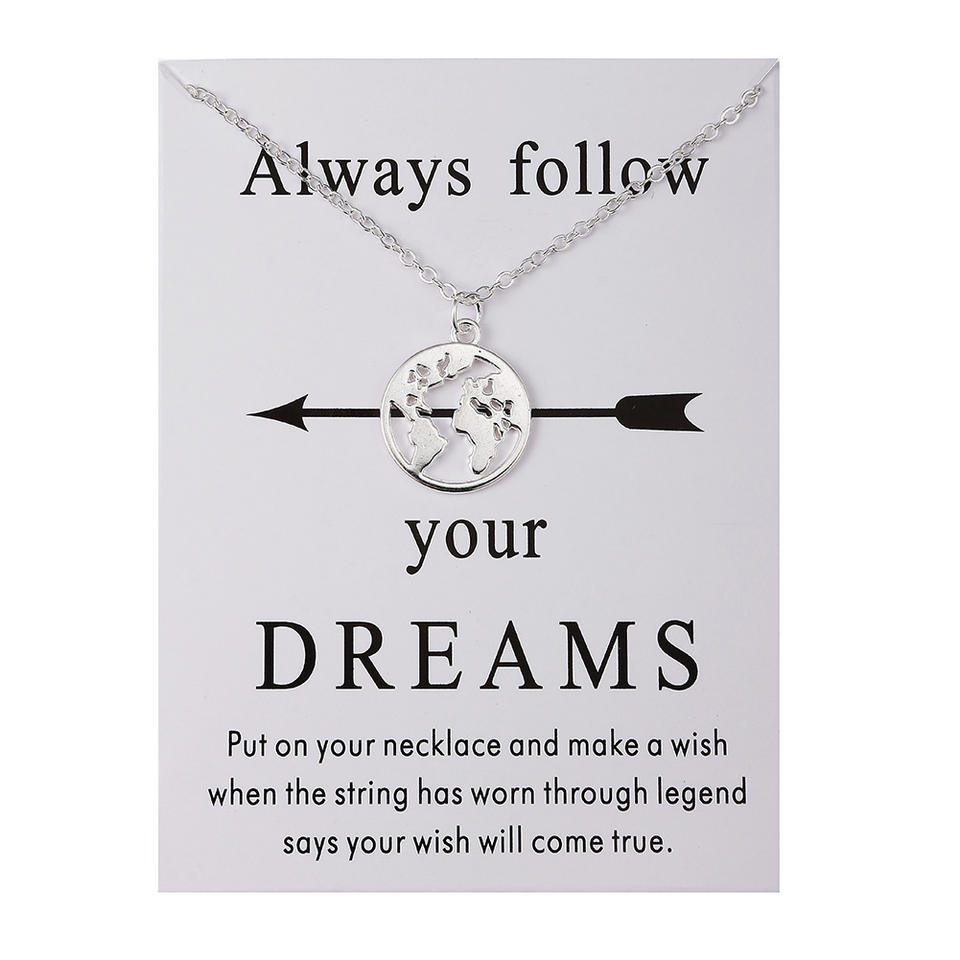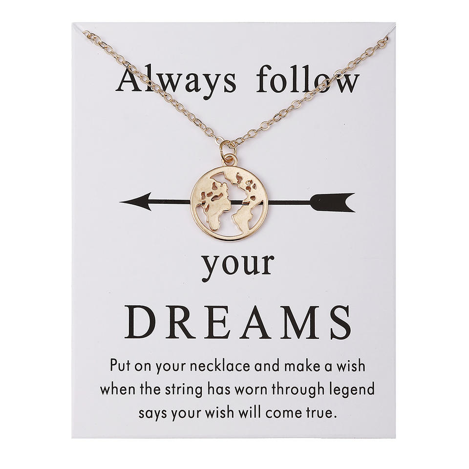 จี้สร้อยคอรูปลูกศรแผนที่โลกที่สง่างามสร้อยคอโชคเกอร์โซ่เสน่ห์สร้อยคอสำหรับผู้หญิงผู้ชายเครื่องประดับตามความฝันของคุณเสมอกระดาษแข็ง