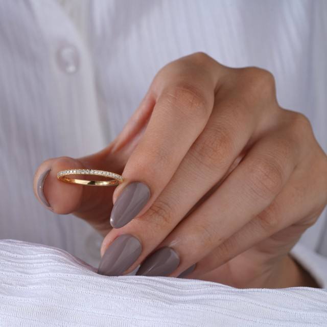 แหวนเพชรทรงเชฟรอนสีเหลืองทองหรูหราสำหรับผู้หญิง แหวนแต่งงานทรงวีเรียบง่าย แหวนครบรอบแต่งงาน เครื่องประดับทันสมัย