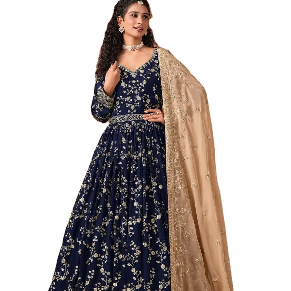 ชุดเดรสอานาร์กาลีสไตล์อินเดีย ดีไซน์หรูหราแต่สวยงาม น้ำหนักเบา ความยาวปกติ พร้อมผ้าคลุมไหล่ เหมาะสำหรับงานแต่งงานและงานปาร์ตี้