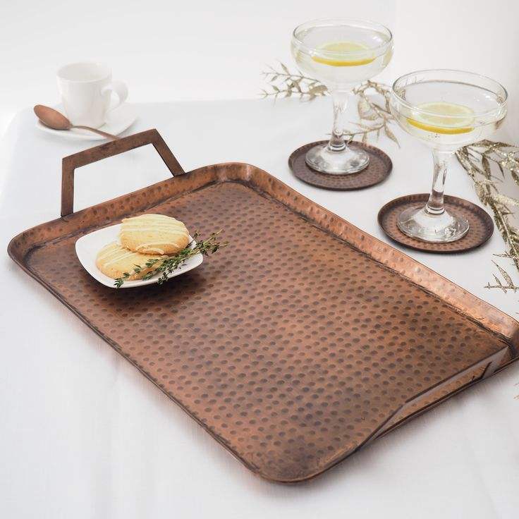 ถาดเสิร์ฟโลหะออกแบบด้วยค้อนที่หรูหราและทนทานของตกแต่งบ้านที่ทันสมัยสำหรับเสิร์ฟเครื่องดื่มและของว่าง