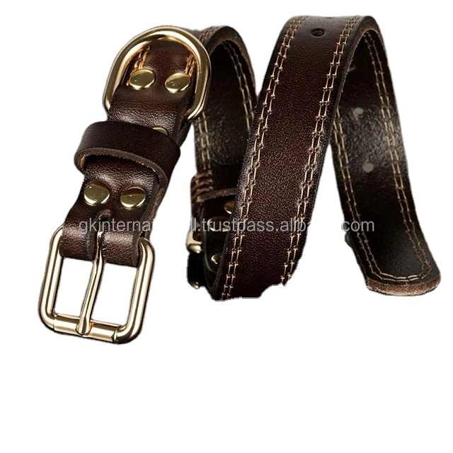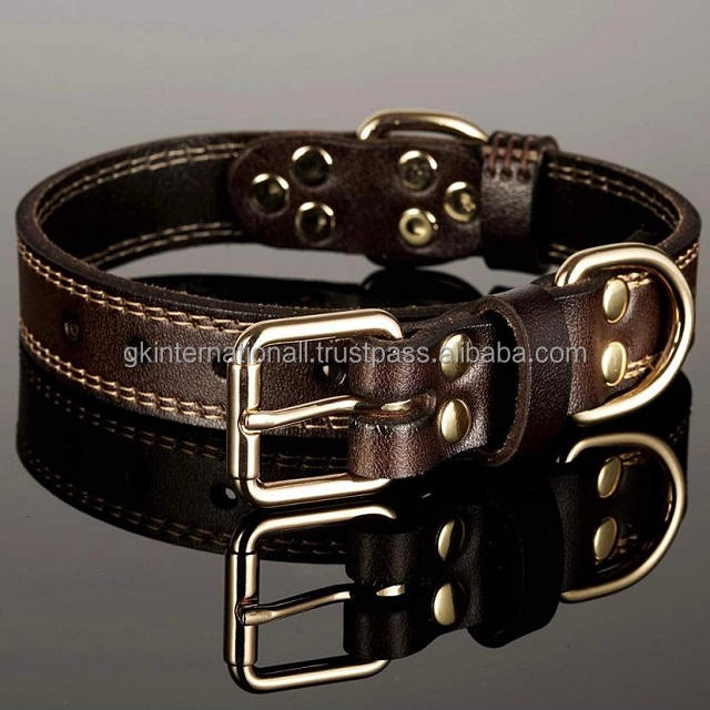 Elegant and Durable Handcrafted From High Quality Cow Leather Dog Collar With Double Contrast Stitching & Nickel Plated Hardware