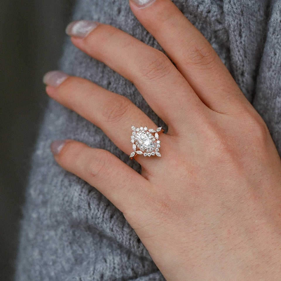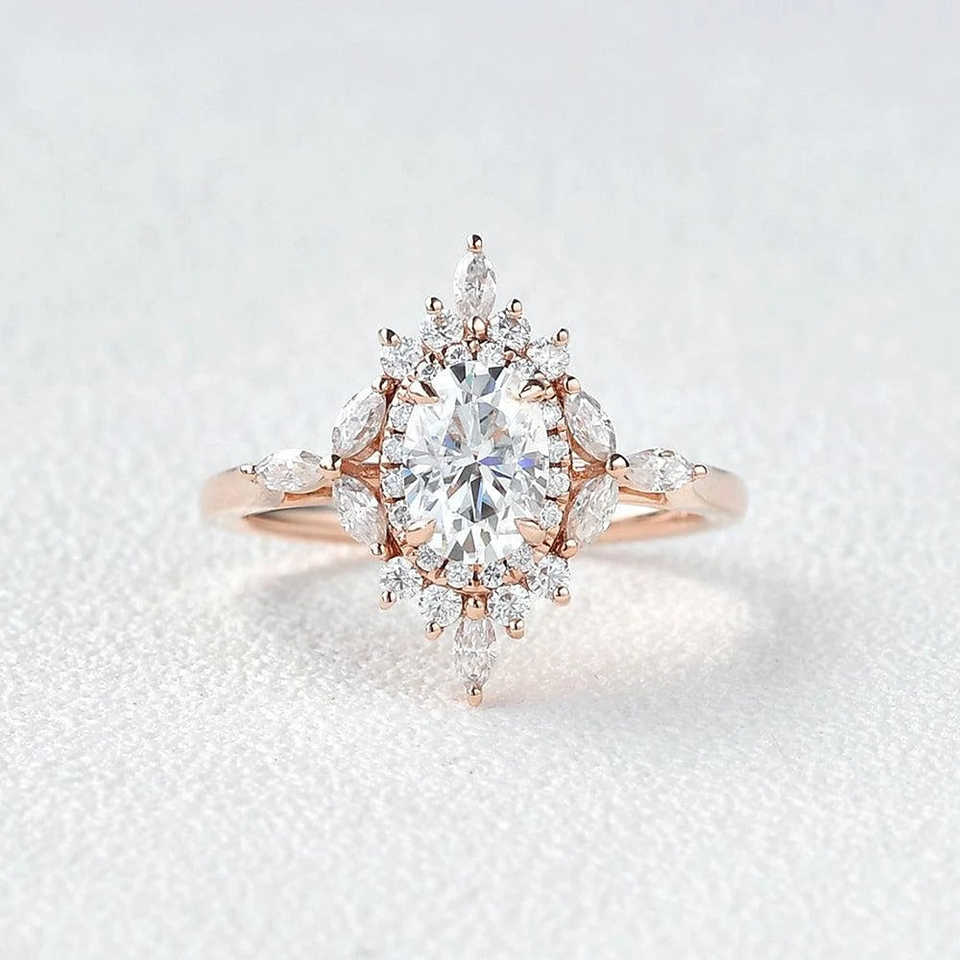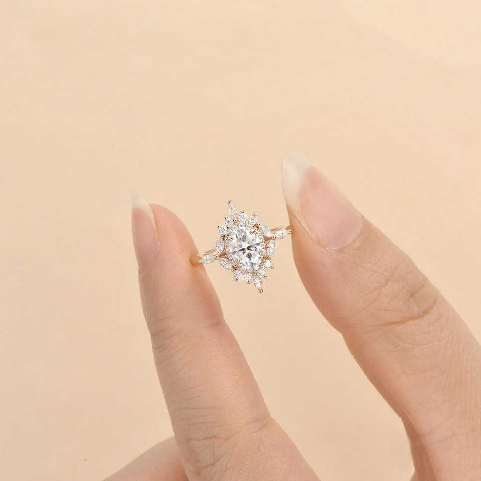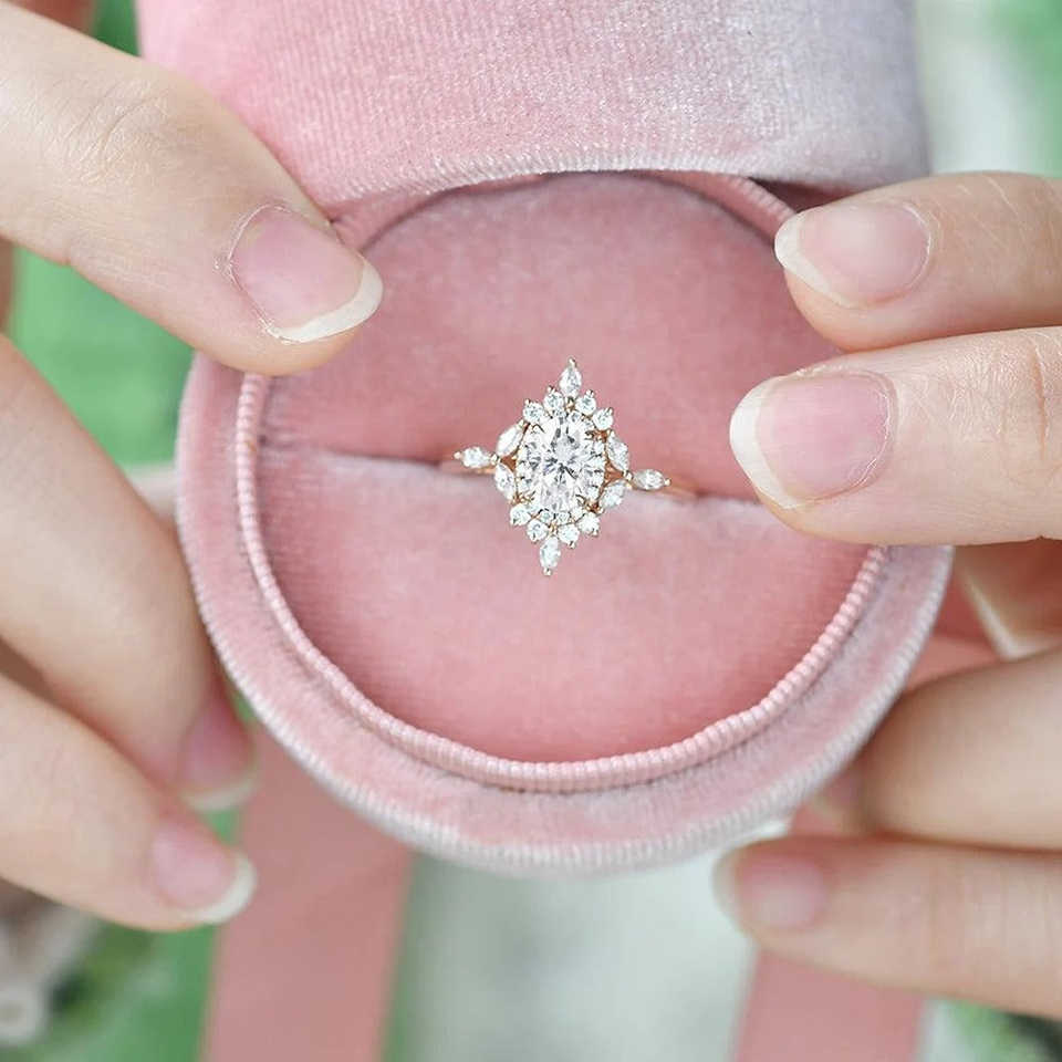 แหวนเพชรโมอิสสำหรับงานแต่งงานรูปวงรีที่สง่างามและทนทานมีเอกลักษณ์ผลิตภัณฑ์ประเภทดอกไม้