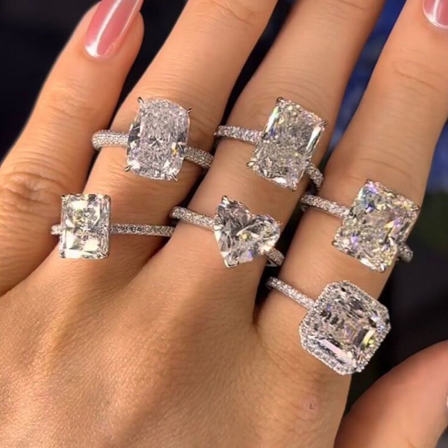 แหวนเงินแท้ 925 ชุบทอง ดีไซน์หรูหรา สำหรับทุกเพศ ประดับเพชรแบบฝัง งานสั่งทำพิเศษสำหรับงานแต่งงาน พร้อมใบรับรอง IGI