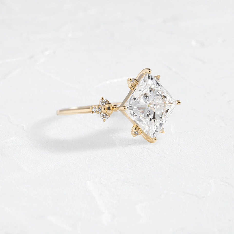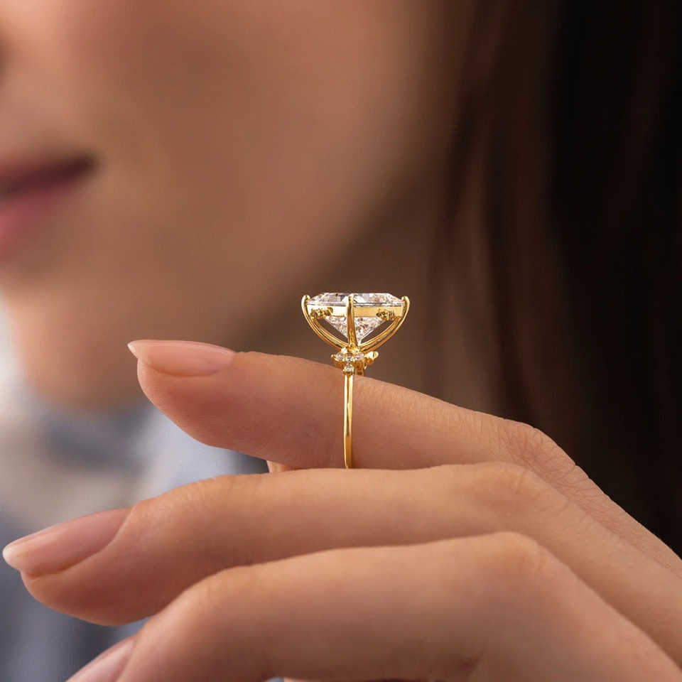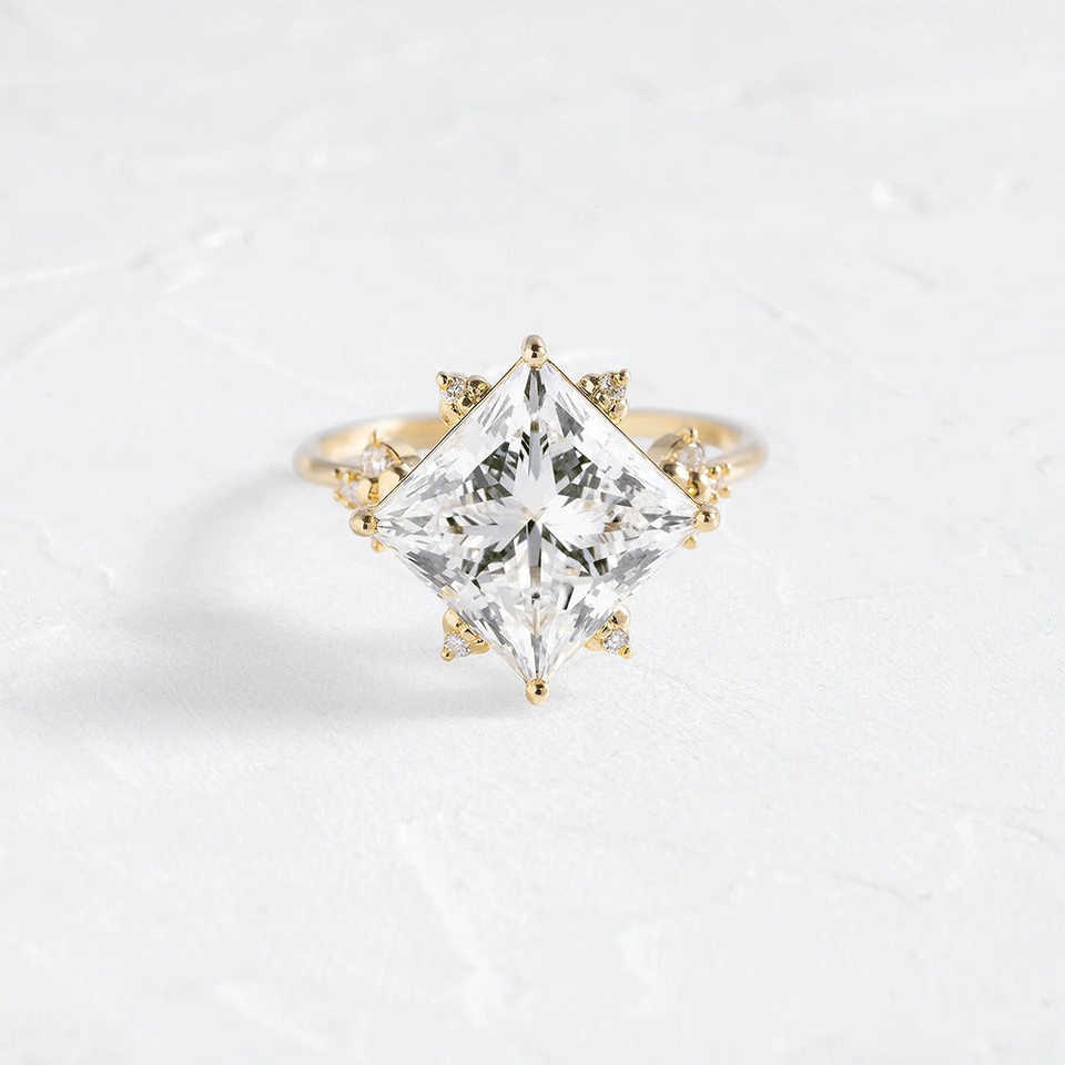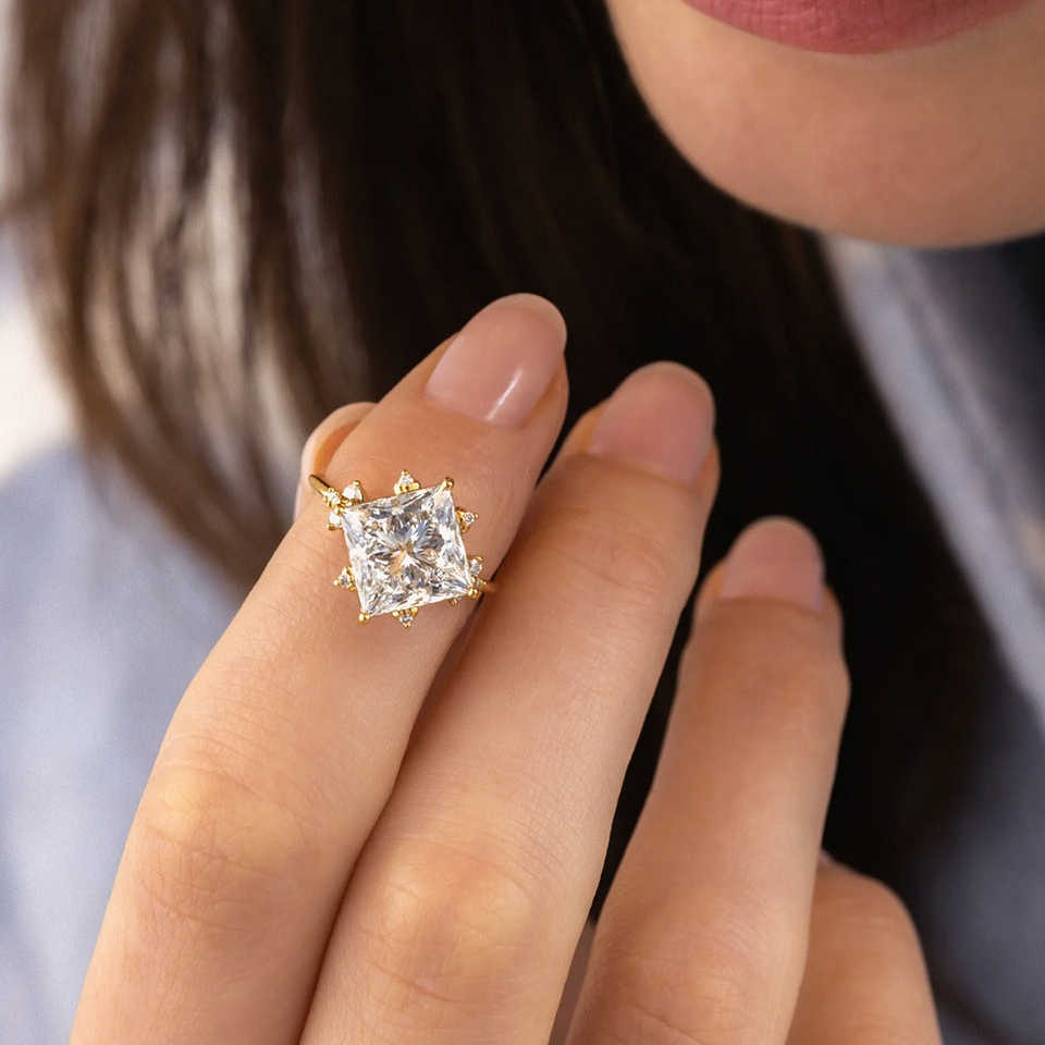 แหวนหมั้นเพชรโมอิสตัดแบบคลัสเตอร์หรูหราและหรูหราสำหรับเจ้าหญิง