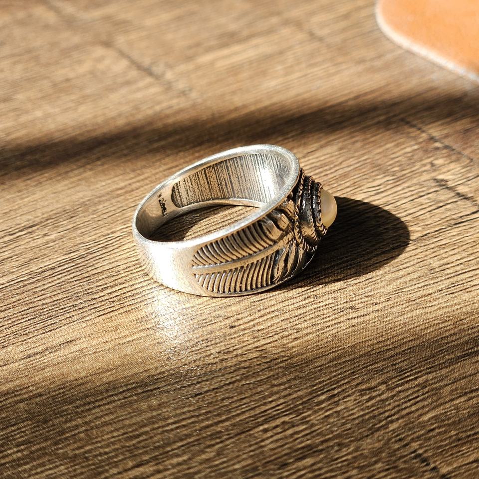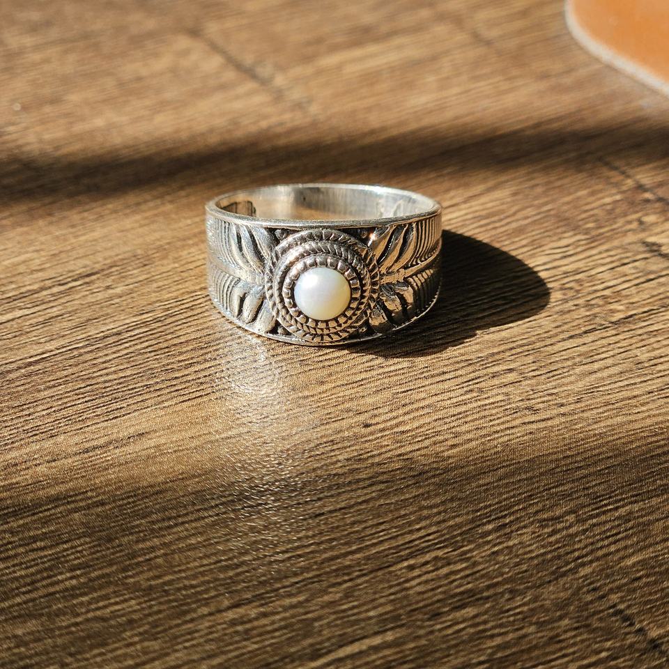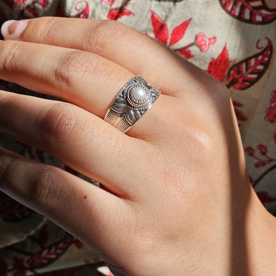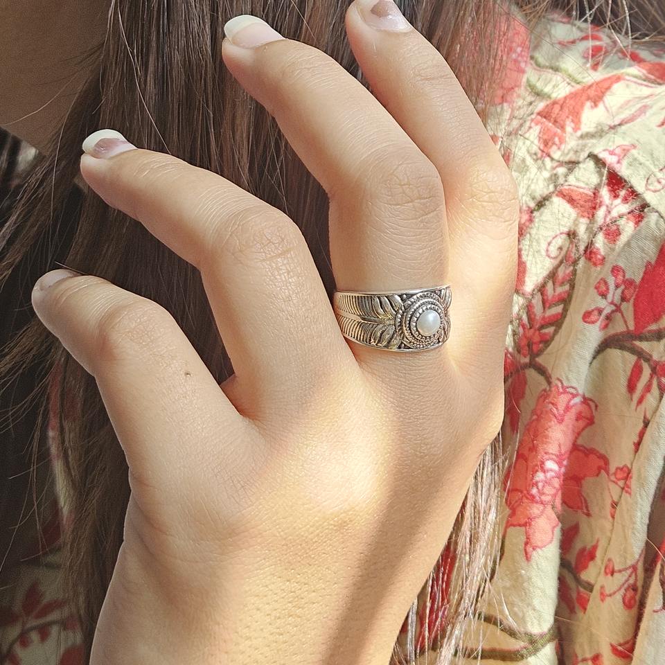 แหวนพลอยสีเงินประดับมุกหรูหราและมีสไตล์ทันสมัยสำหรับงานแต่งงานและงานครบรอบ