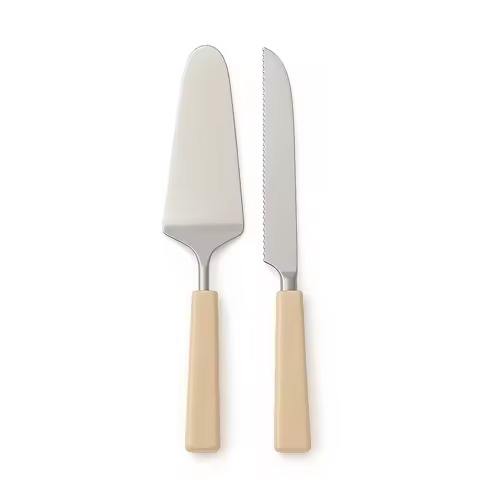 ชุดมีดและที่ตักเค้กโลหะสีเบจหรูหรา ทนทาน เป็นมิตรกับสิ่งแวดล้อม อุปกรณ์ตัดเค้กงานแต่งงานระดับพรีเมียม