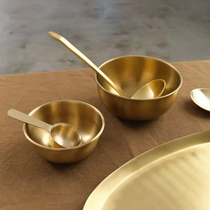ชามทองเหลืองสำหรับเสิร์ฟพร้อมประกายสีทองเหมาะสำหรับงานแต่งงานอินเดียและการรับประทานอาหารพิธี