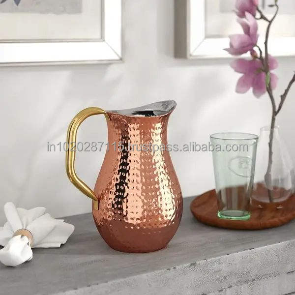 เหยือกทองแดงหรูหราที่มีพื้นผิวเรียบและรูปทรงสง่างามทำขึ้นเพื่อการตกแต่งหรือใช้งานได้จริง