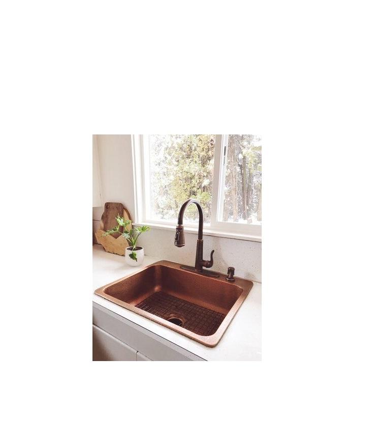 อ่างล้างจานทองแดงหรูหราออกแบบมาสำหรับห้องครัวบ้านไร่แบบชนบทแบบดั้งเดิมพร้อมรูปลักษณ์ของช่างฝีมือที่ทำด้วยมือ