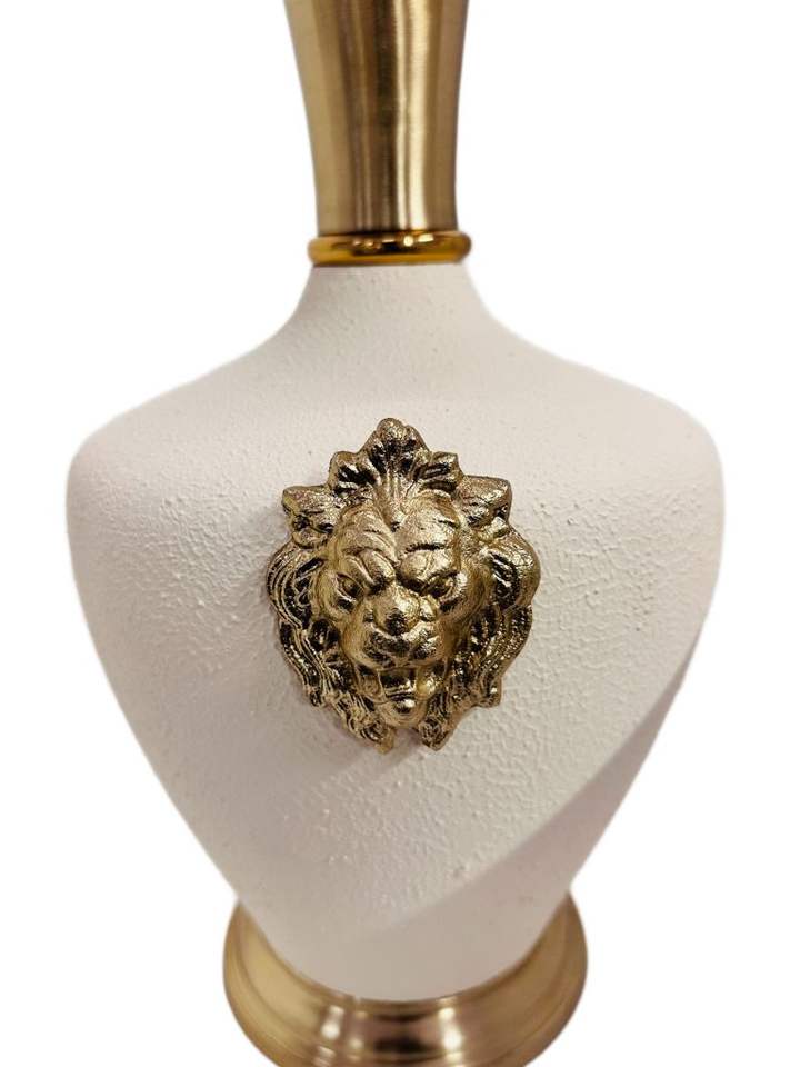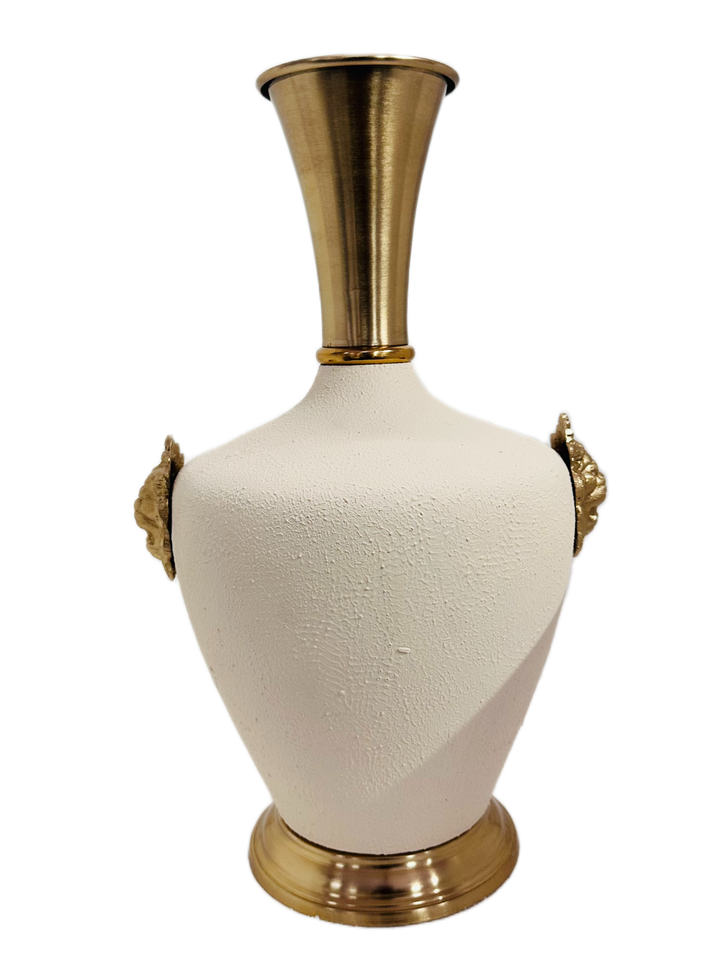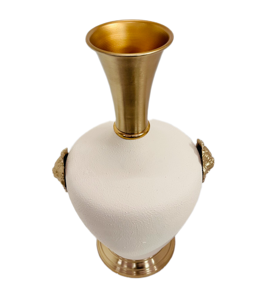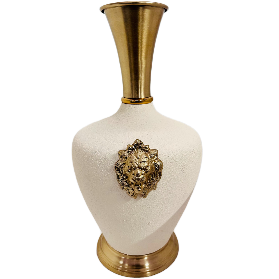 แจกันดอกไม้สิงโตตกแต่งอย่างหรูหราพื้นผิวสีขาวและสีทองสำหรับห้องนั่งเล่นและห้องนอนดีไซน์หรูหรา