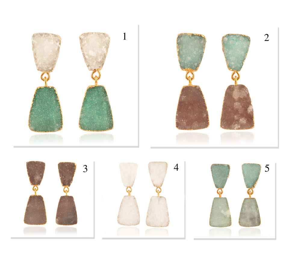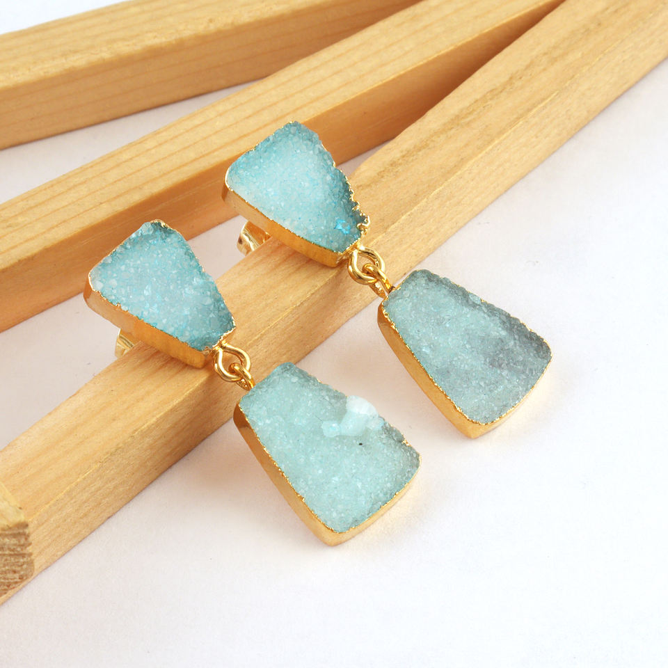 ต่างหูหินคู่รูปทรงแฟนซีต่างหูเรซิ่นน้ำตาลดรูซี่ต่างหูทองเหลืองชุบทอง18K ขายส่งเครื่องประดับแฟชั่น