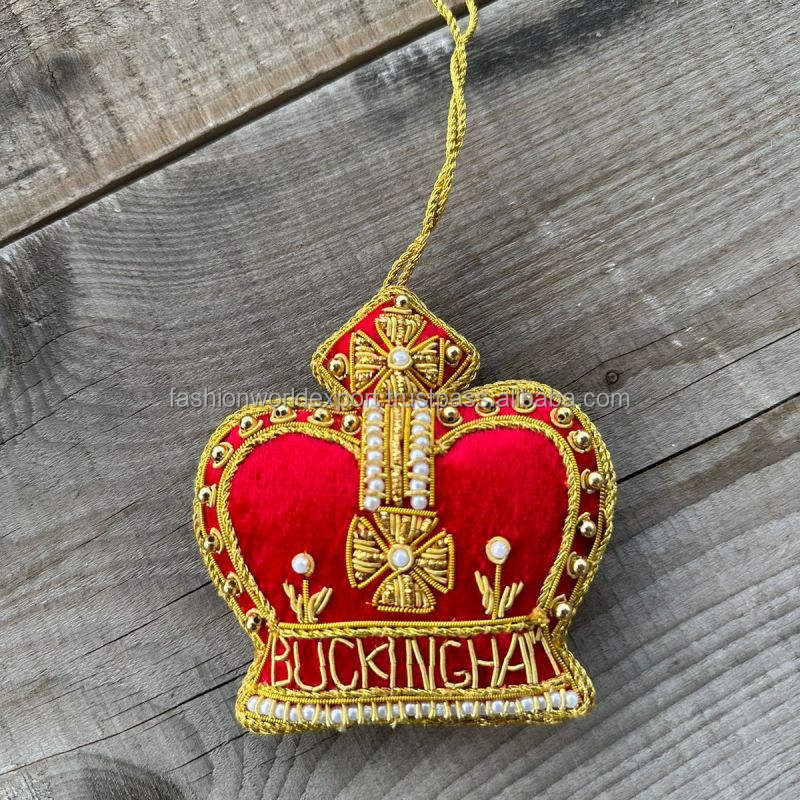 หรูหราสำหรับเครื่องประดับขลุ่ยแชมเปญการออกแบบด้วยมือสีทองงาช้างรายละเอียดมงกุฎไข่มุกสำหรับปีใหม่ของแขวนคริสต์มาส