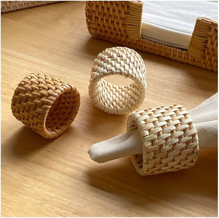 ชุดแหวนรองผ้าเช็ดปากแบบวงกลมทอผ้า 4 ชิ้น ดีไซน์หรูหราสำหรับห้องครัว ห้องรับประทานอาหาร และงานเลี้ยงอาหารค่ำ