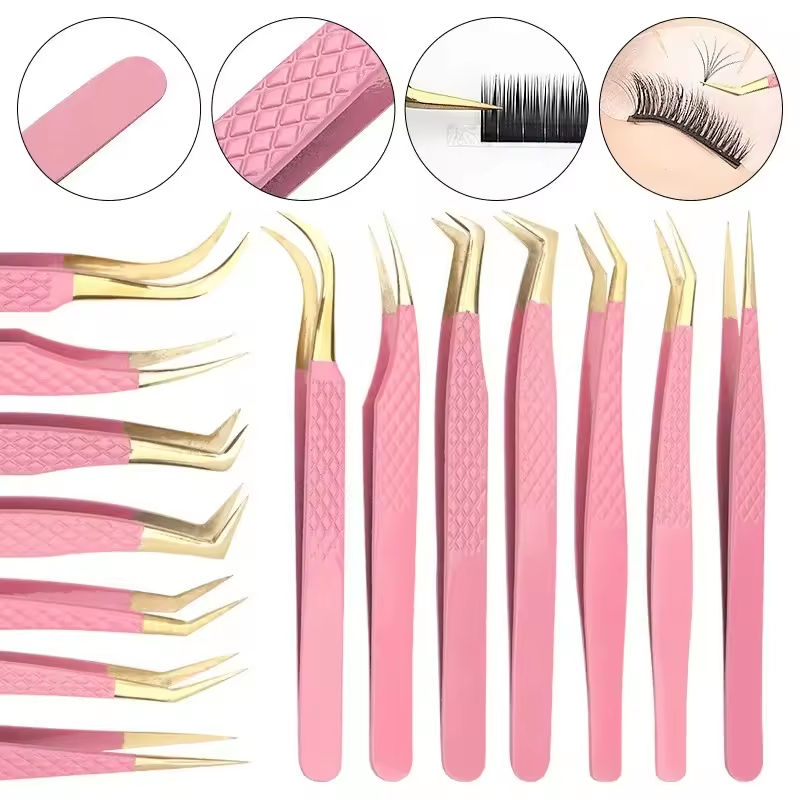 แหนบเคลือบทองหรูหราพร้อมปลายแหลมสำหรับมืออาชีพด้านการแต่งหน้าร้านเสริมสวยและการดูแลตัดแต่งขนส่วนบุคคล