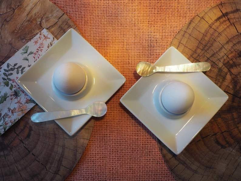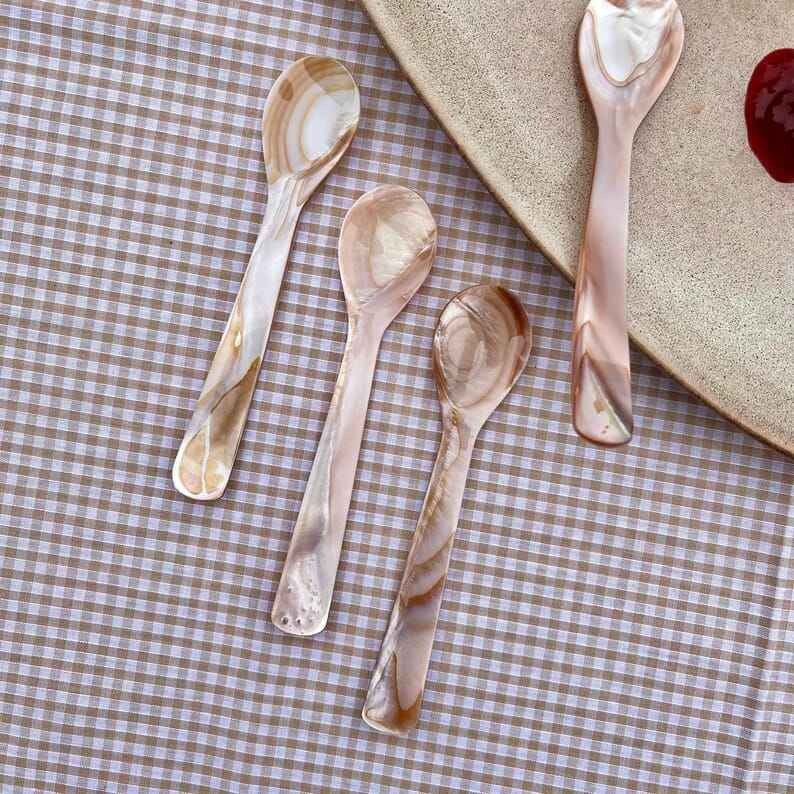 ช้อนแม่มุกทำด้วยมือหรูหราเหมาะสำหรับคาเวียร์ขนมหวานหรือของตกแต่งธรรมชาติเรียบเนียนและหรูหรา