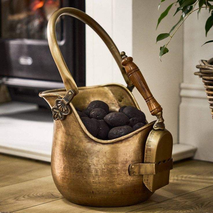 ถังถ่านหินทองเหลืองมรดกสืบทอดหรูหราพร้อมด้วยงานฝีมือทองเหลืองและของตกแต่งแท้เหมาะสำหรับชนบทหรือวินเทจ