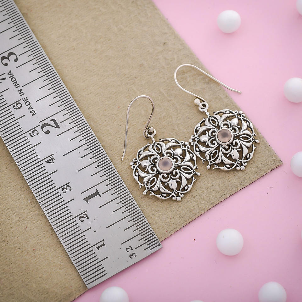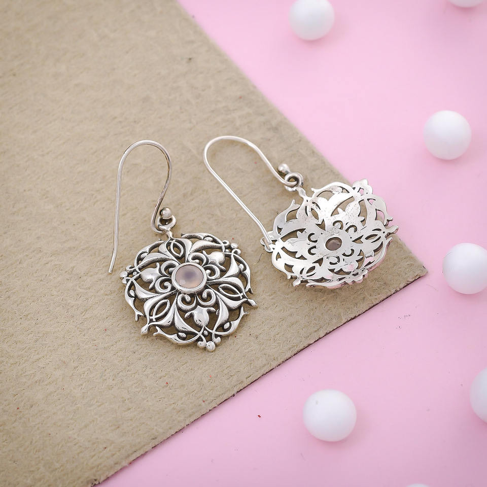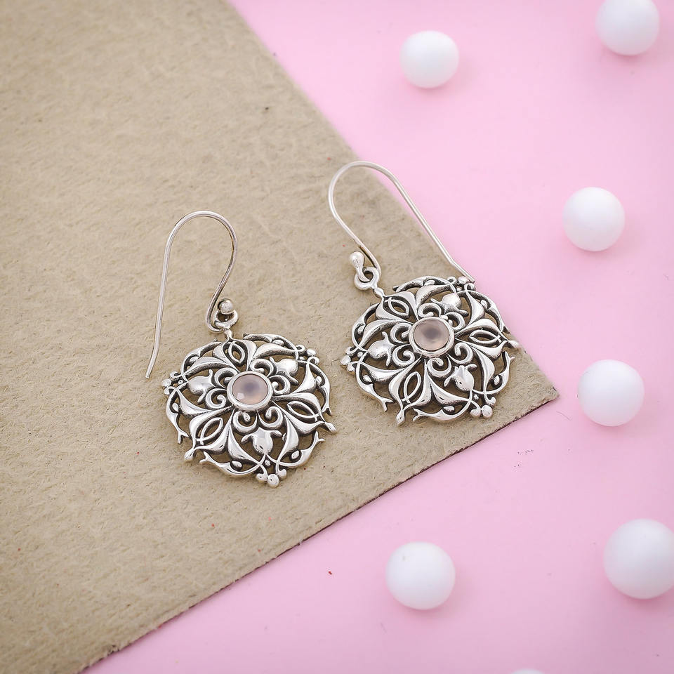 ต่างหูอัญมณีควอตซ์ลายกุหลาบโมเสกที่ดูสง่างาม925เงินสเตอร์ลิงดีไซน์คลาสสิก