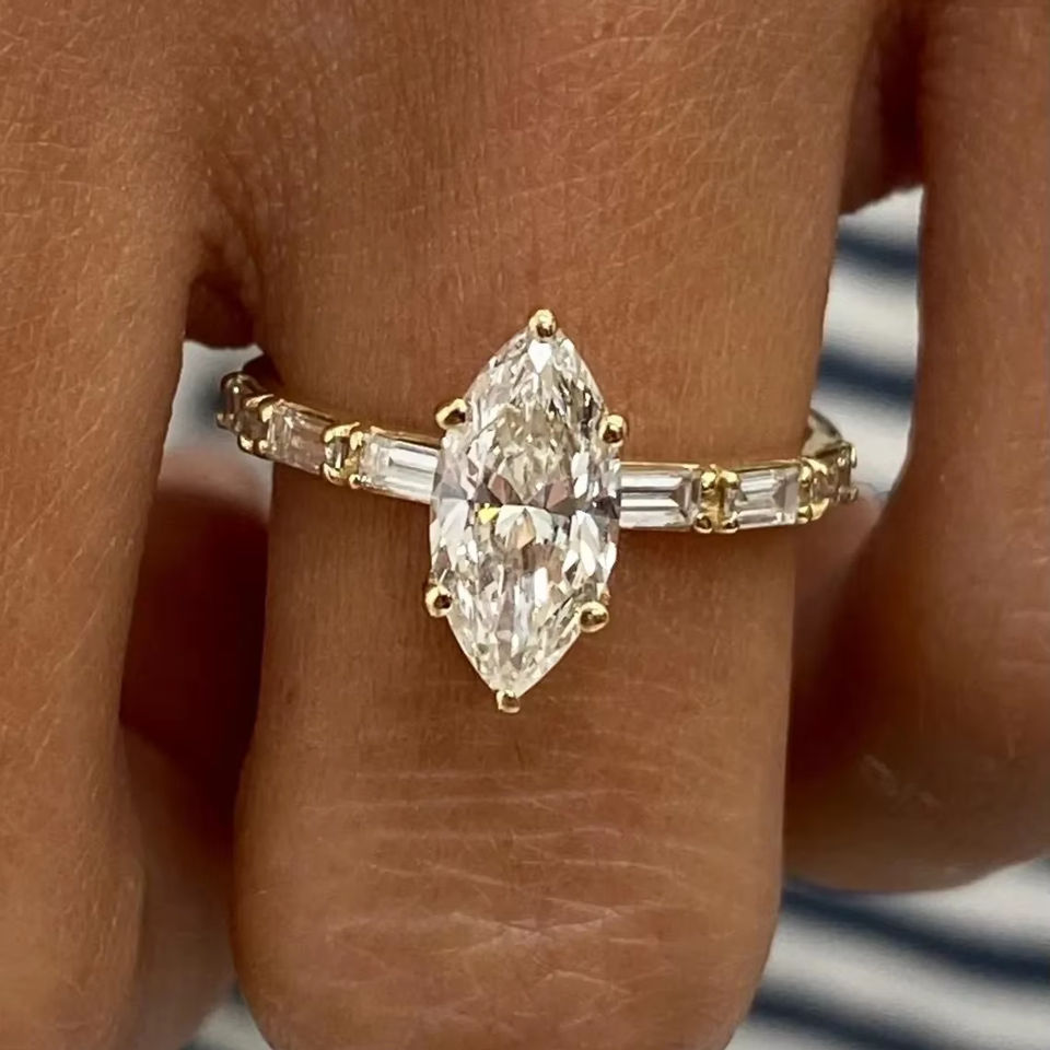 แหวนเพชรที่งดงามและทรงบาแกตต์สำหรับปลูกในห้องปฏิบัติการสีโรสโกลด์สีขาวทองและสีเงินที่ได้รับการรับรองจาก IGI D E F