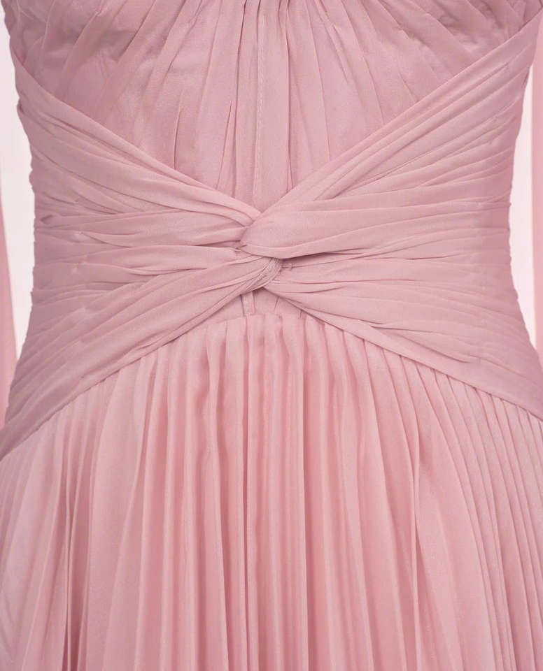 ชุดราตรีจีบหรูหรา สีชมพูอ่อนหวาน ผลิตในเวียดนาม พร้อมบริการรับผลิตแบบ OEM/ODM ที่ปรับแต่งได้