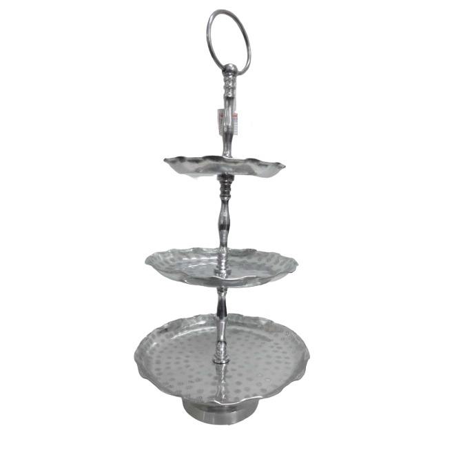 แท่นวางเค้กโลหะพรีเมี่ยมสุดหรูพร้อมสลักลายดอกไม้สีเงินสลับซับซ้อนและฐานที่แข็งแรงสำหรับงานแต่งงานและกิจกรรมพิเศษ