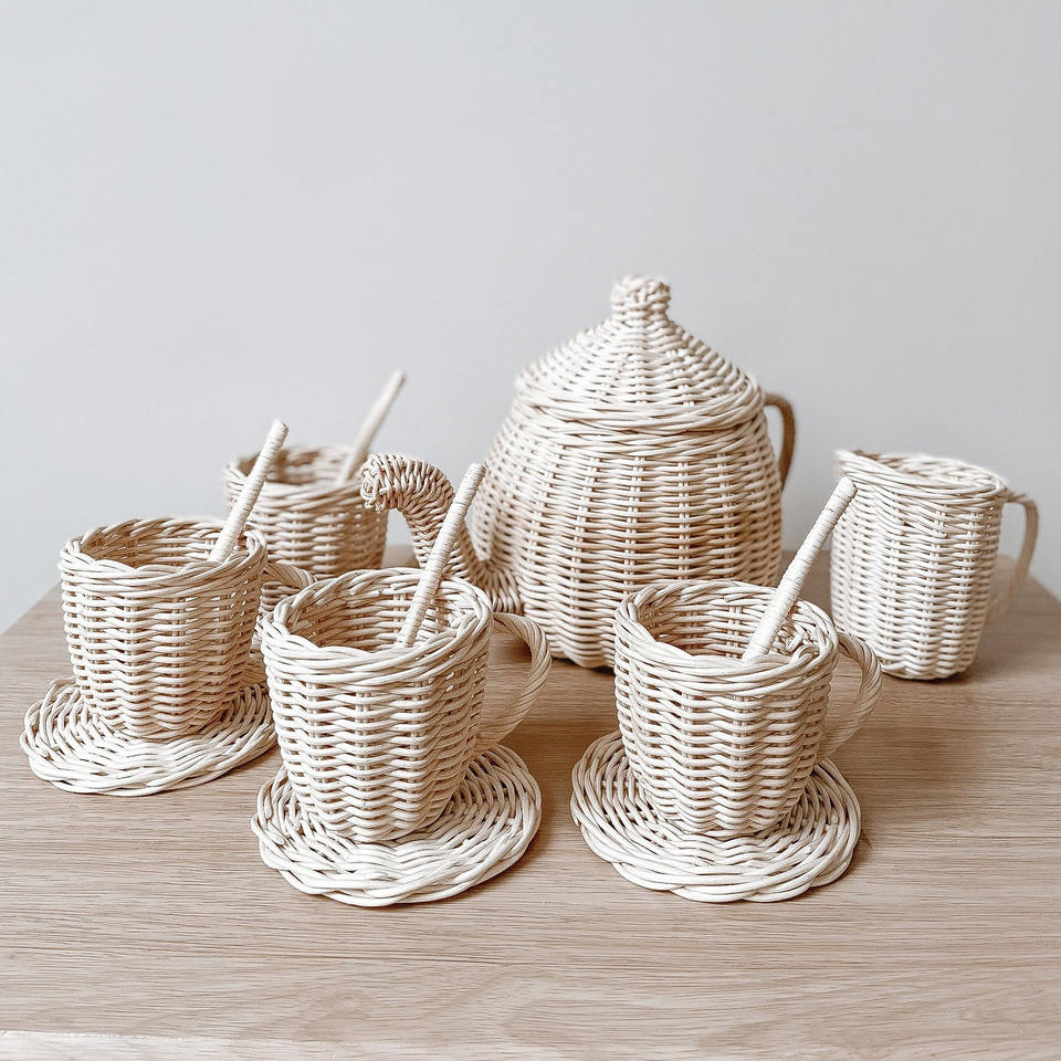 Rattan teapot set