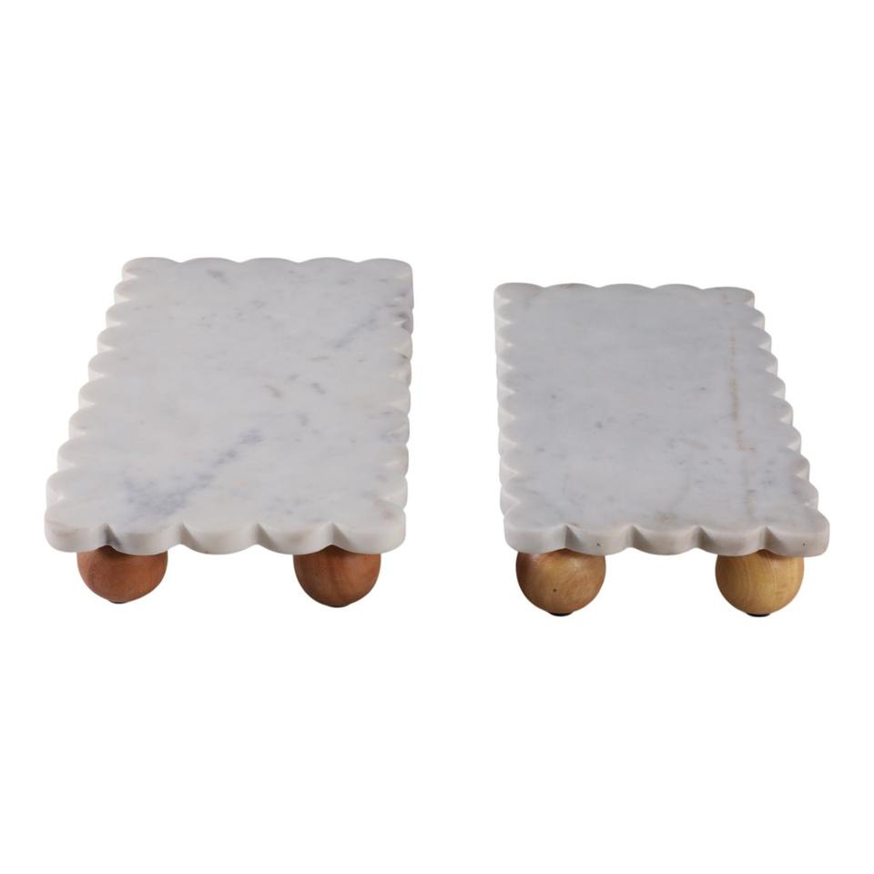 Elegant rectangular Lavento stone marble tray with rich brown and beige veining perfect for serving or luxury decorative accent