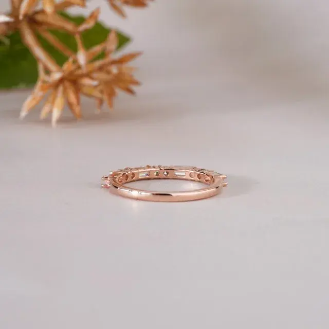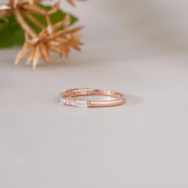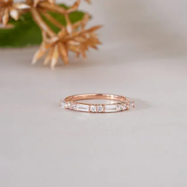 แหวนเพชรทรงบาแกตต์สีโรสโกลด์สุดหรูสำหรับผู้หญิง แหวนครึ่งวงนิรันดร์ เหมาะสำหรับเป็นของขวัญวันครบรอบแต่งงานหรือของขวัญสำหรับเจ้าสาว เครื่องประดับชั้นดี
