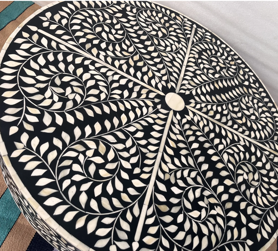 โต๊ะกาแฟทรงกลมหรูหราแกะสลักกระดูกสวยงามงานฝีมือประณีตสำหรับห้องนั่งเล่นหรือโรงแรม