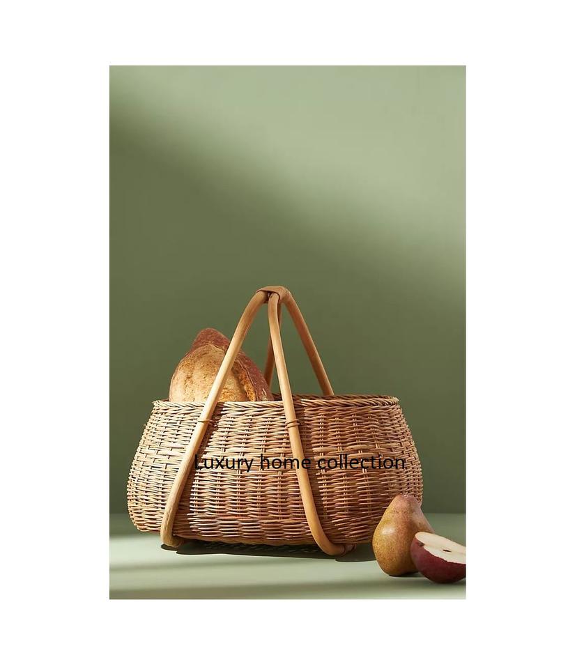 ตะกร้าหวายทรงกลมหรูหราสำหรับขนมปังผลไม้หรือของตกแต่งชิ้นกลางโต๊ะทำด้วยมือ