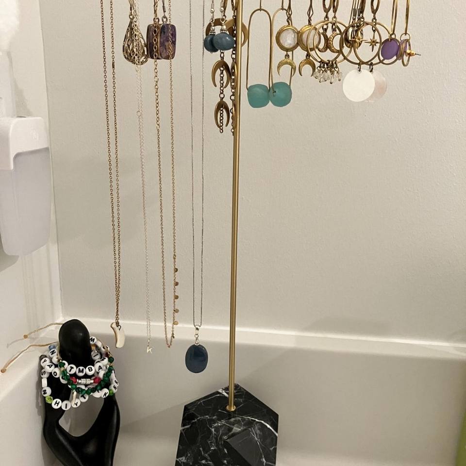 รูปทรงที่หรูหราเพิ่มความโดดเด่นและศิลปะให้กับทุกพื้นที่ในการแต่งตัว แท่นวางเครื่องประดับโลหะที่สมบูรณ์แบบสำหรับพื้นที่แต่งตัวที่สวยงาม