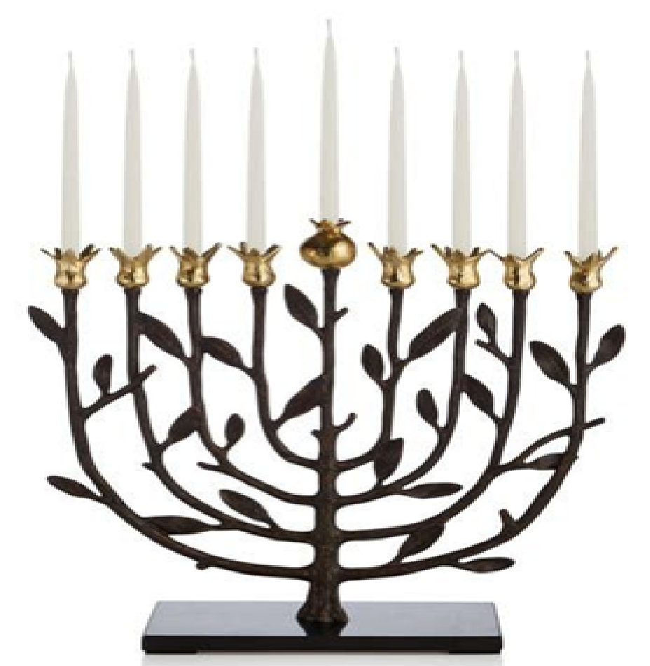 เชิงเทียนโลหะรูปตัวยูสีเงินสุดหรู พร้อมตกแต่งด้วยสีทองบนที่วางเทียนเก้าอัน มีจำหน่ายในราคาขายส่ง