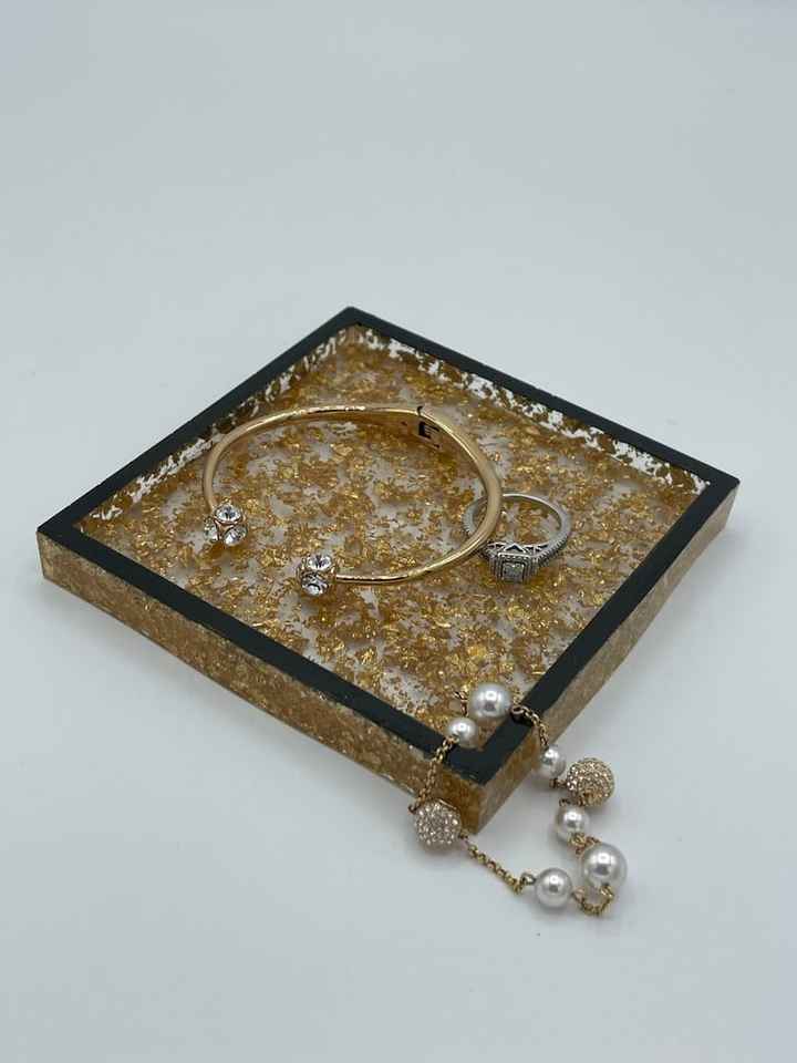 ถาดใส่เครื่องประดับเรซิ่นทรงสี่เหลี่ยม ดีไซน์หรูหรา ผิวมันเงา เหมาะสำหรับจัดเก็บแหวน ต่างหู และเครื่องประดับประจำวัน