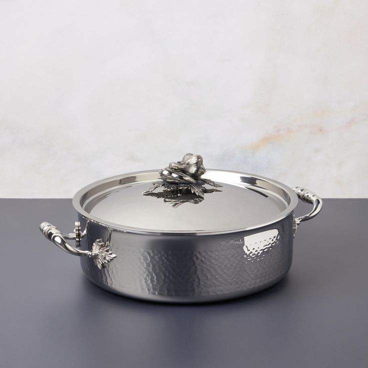 จานทำจากสเตนเลสสตีลที่มีที่จับหรูหราและที่วางช้อนที่ออกแบบมาสำหรับบริการอาหารหรู