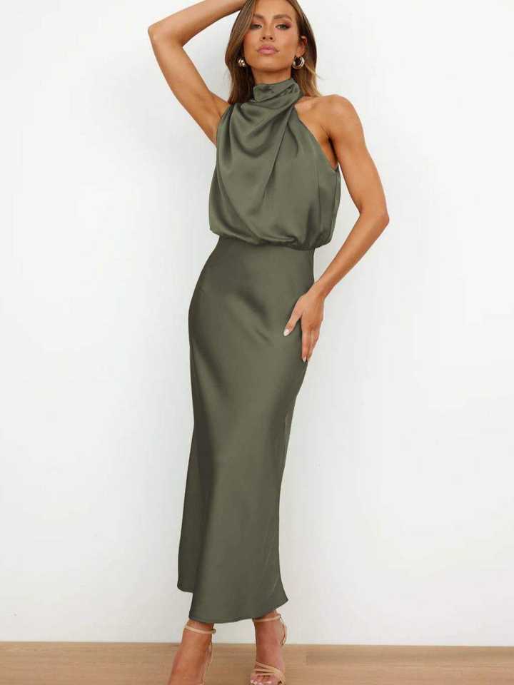 ชุดราตรียาวมิดิไม่มีสายคาดิสำหรับผู้หญิงชุดทางการชุดเดรสยาวแขนกุดสีล้วนผ้านุ่มเก๋มีสไตล์ใส่ได้หลายโอกาสฤดูร้อนที่สง่างาม