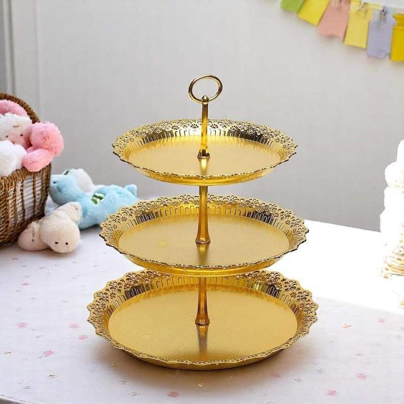 แท่นวางช็อคโกแลตโลหะสามชั้นที่หรูหราสำหรับห้องครัวในบ้านหรือเบเกอรี่ใช้ทำจากเหล็กที่ทนทานและตกแต่งสไตล์วินเทจ