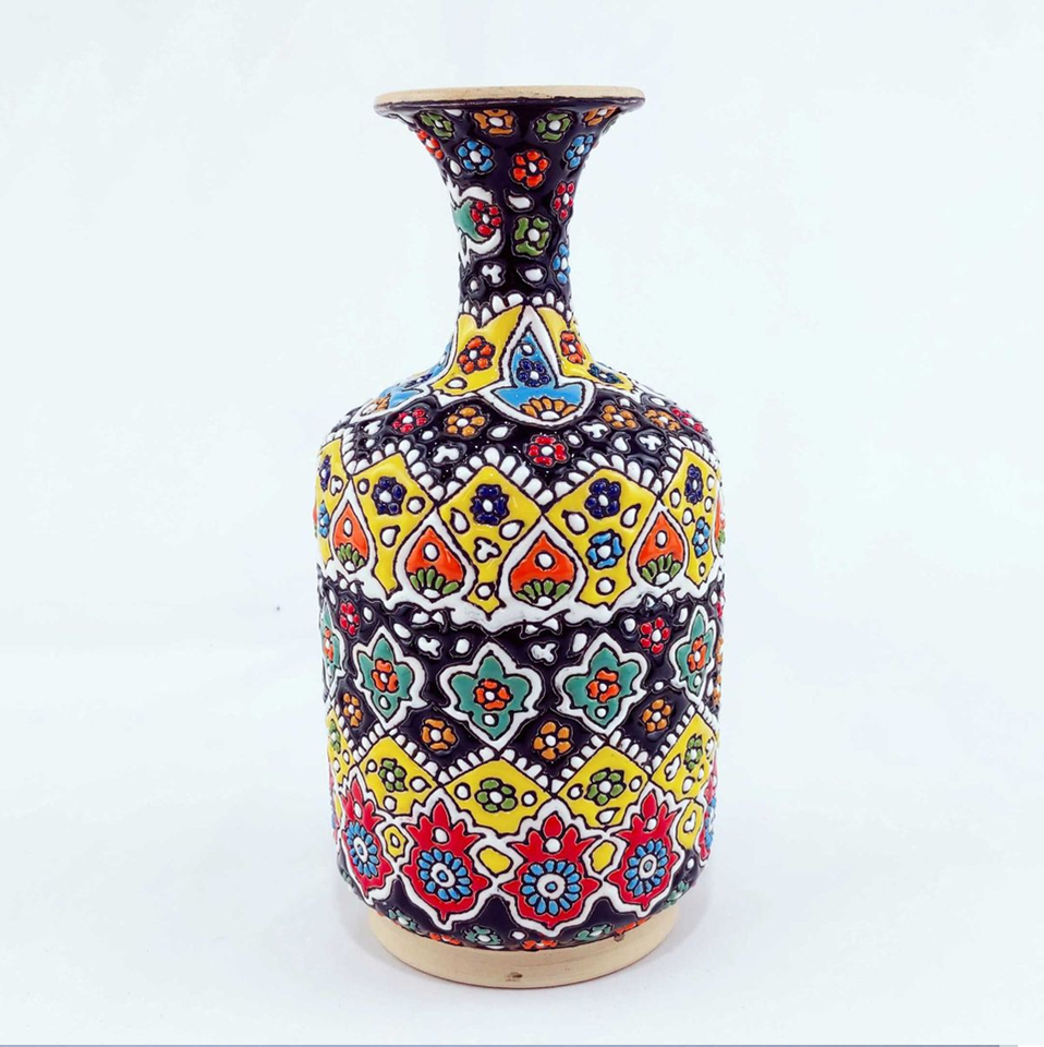แจกันเซรามิกสีเขียวขุ่นลายดอกไม้หลากสีสัน พร้อมลวดลายนูน จำหน่ายในราคาขายส่ง